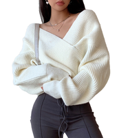 Jersey sexy de punto de manga larga de color sólido con cuello en V y espalda cruzada informal para mujer para Otoño Invierno